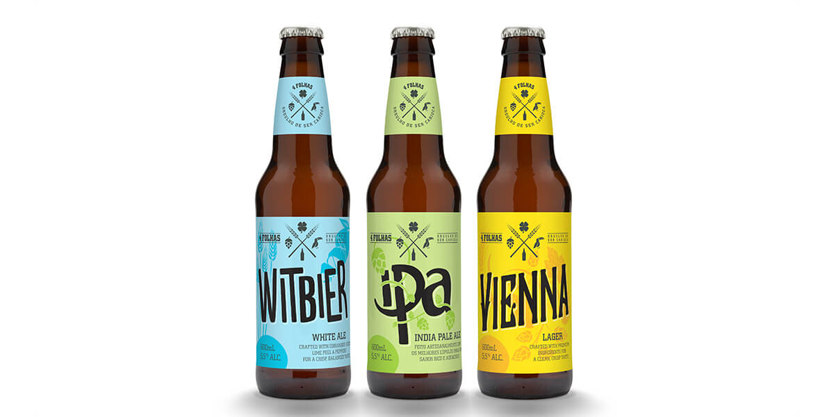 4 Folhas is a craft beer brewed in Rio de Janiero. The name translates to four leaves, or four leaf clover with the idea that the beer is a lucky charm. We felt that was too obvious and blatant to convey when developing the brandmark. Instead we focused on four unique characteristics of brand…the luck, the ingredients, the bottle and a piece of Rio.