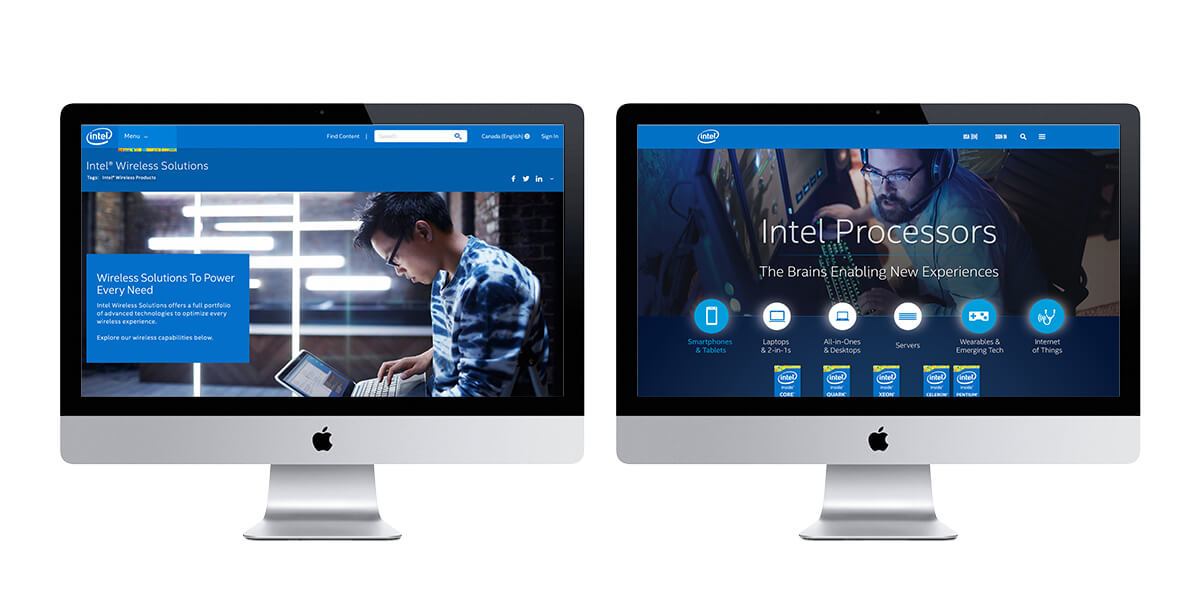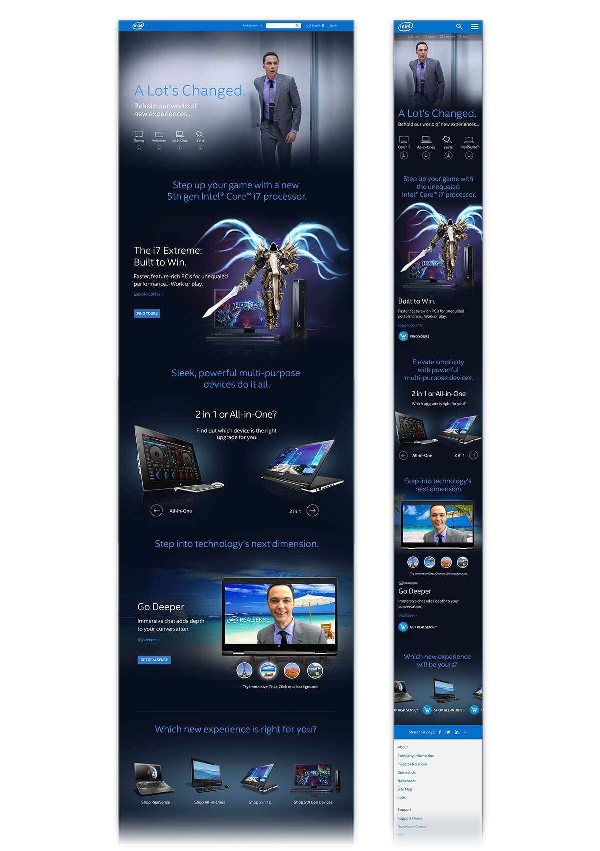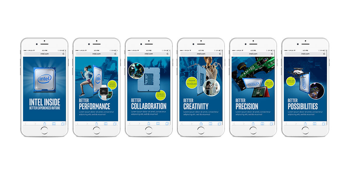 The Intel brand was transitioning to an updated look and feel. These design concepts were proposed to bridge the old design while the new was in the development phase.