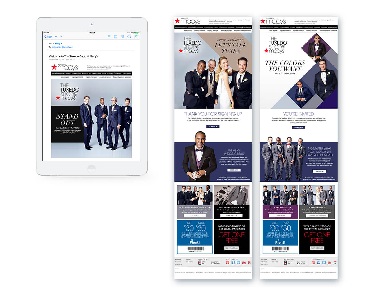 We also designed a series of email announcements promoting a collaboration with Macy’s. Each email’s message builds from the previous email, guiding the recipient through each step.